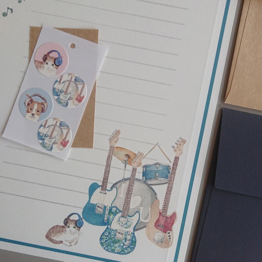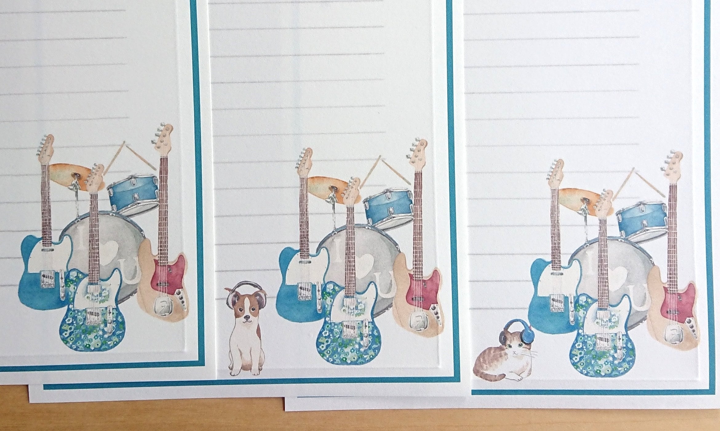 選べるデザイン*猫とギター好きさんのレターセット《ⅿy favorite music♪》