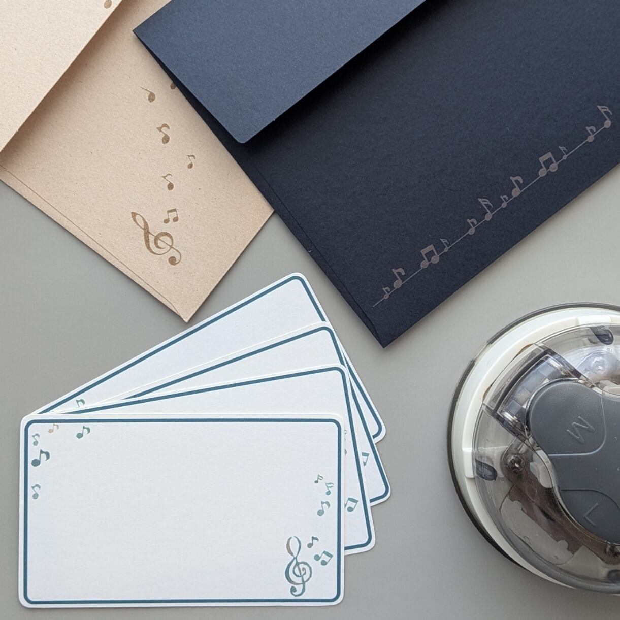 セットの封筒はブルーブラックとウッドブラウン。深みがあり上質なコットン封筒です。