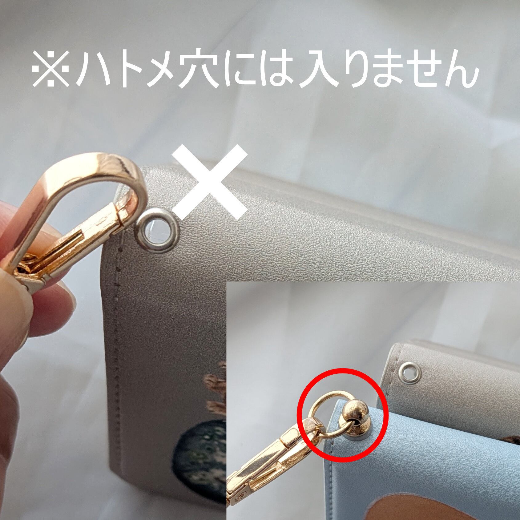 手帳型ケースにショルダーストラップを付けたい場合は、必ずドロップハンドルと一緒にご注文ください