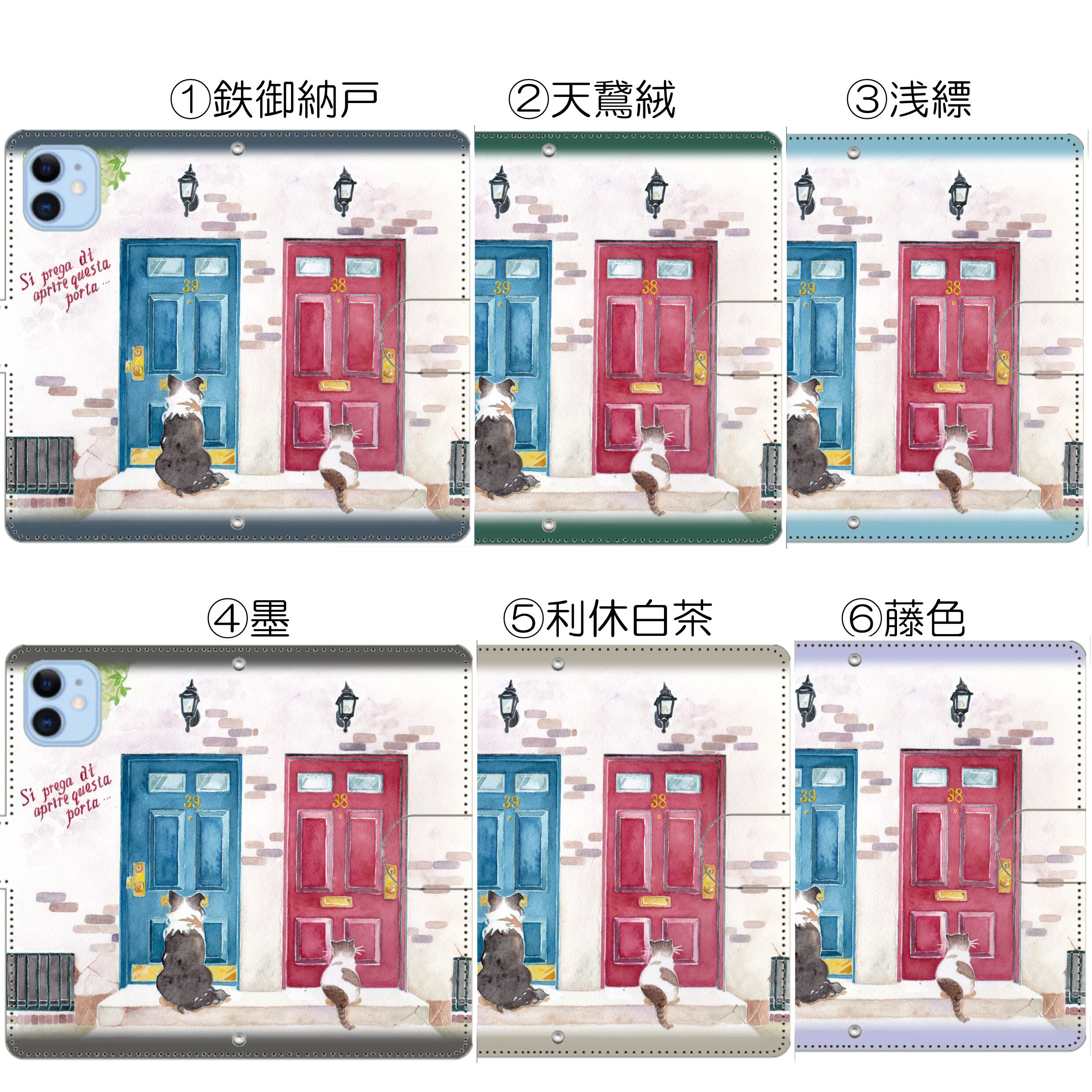 名入れ可・誕生日色に変更可*ストラップホール2か所*クリアポケット*ほぼ全機種対応 手帳型*犬と猫の後ろ姿がいとおしい*【Door】