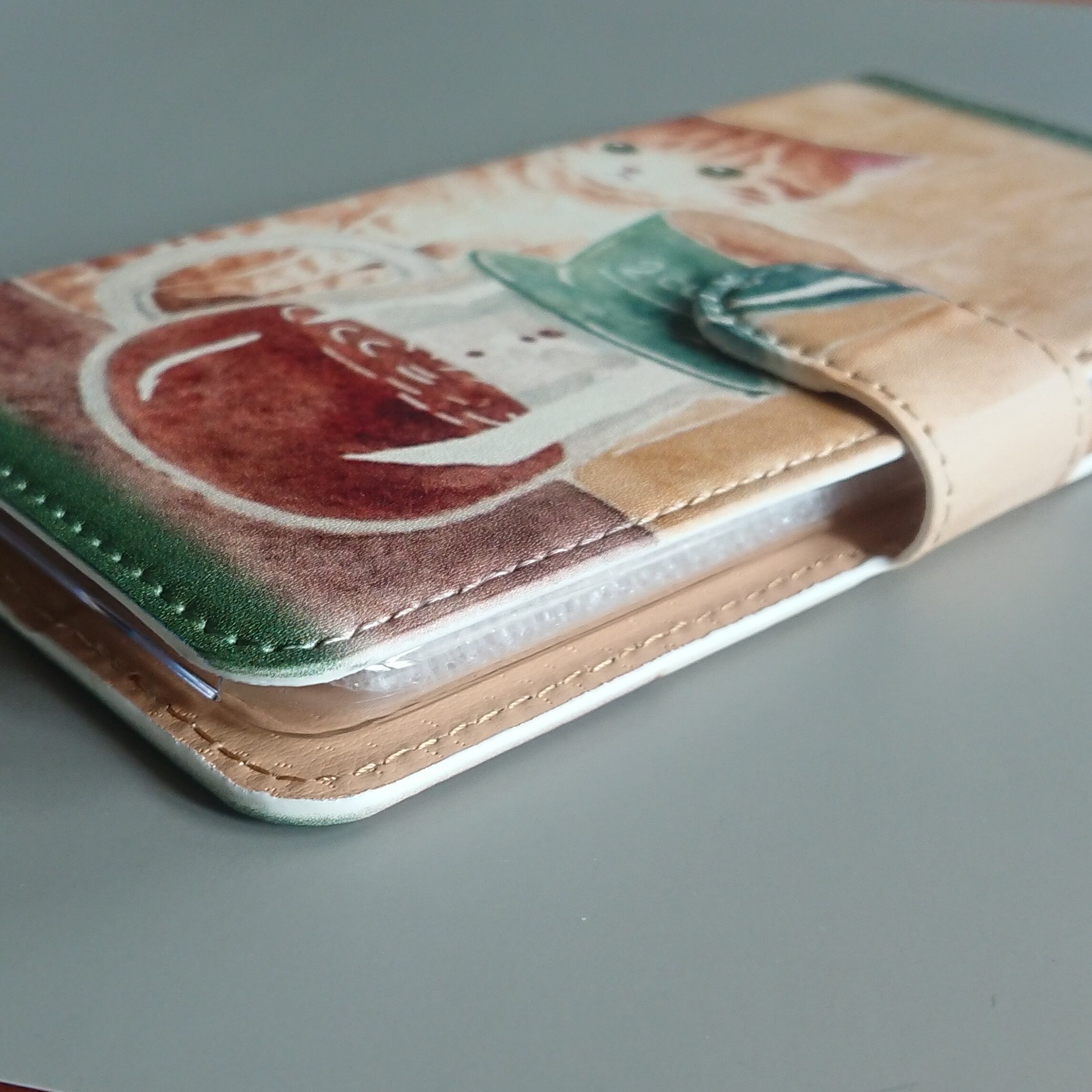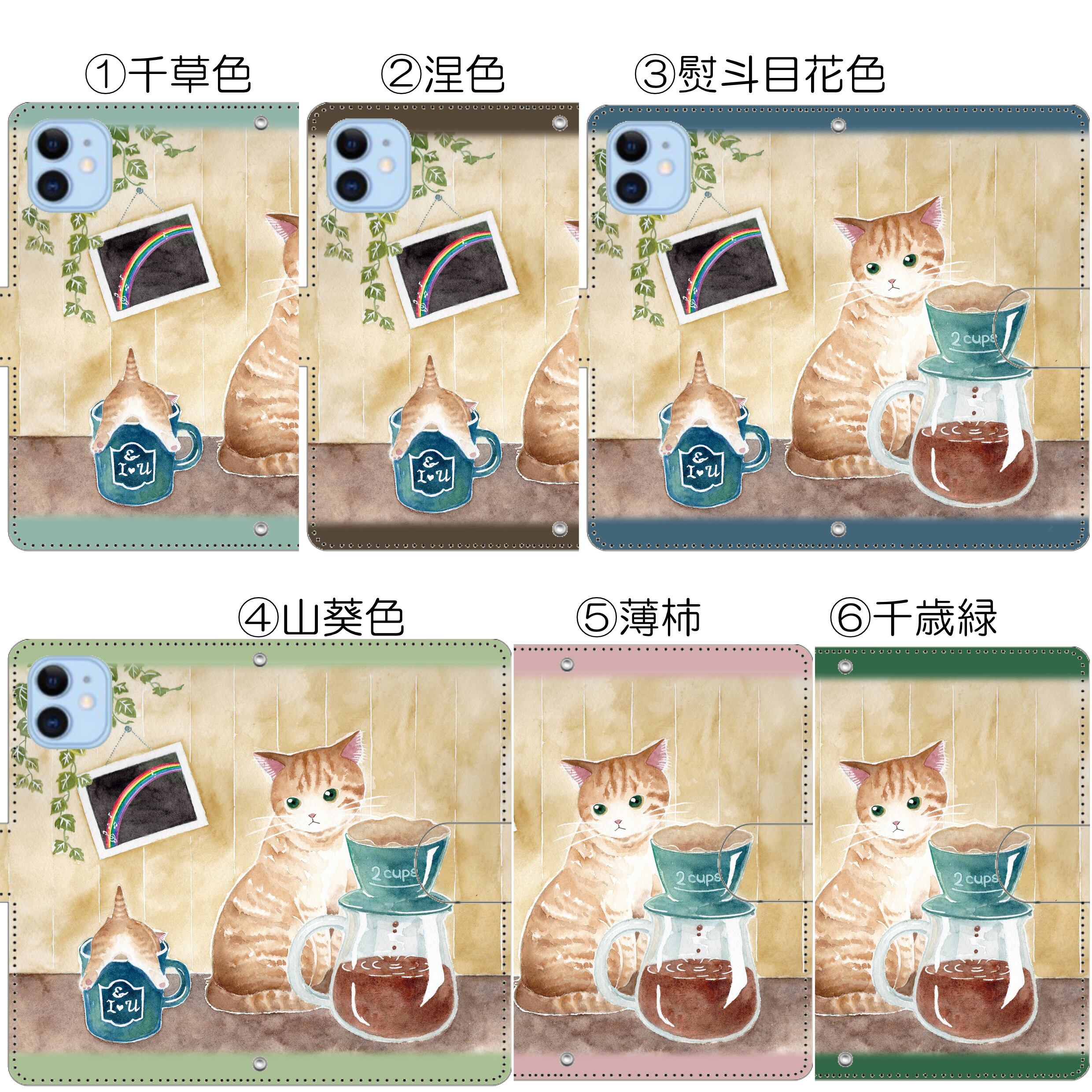 名入れ可・誕生日色に変更可*ストラップホール2か所*クリアポケット*ほぼ全機種対応 手帳型*猫とコーヒー【drip】