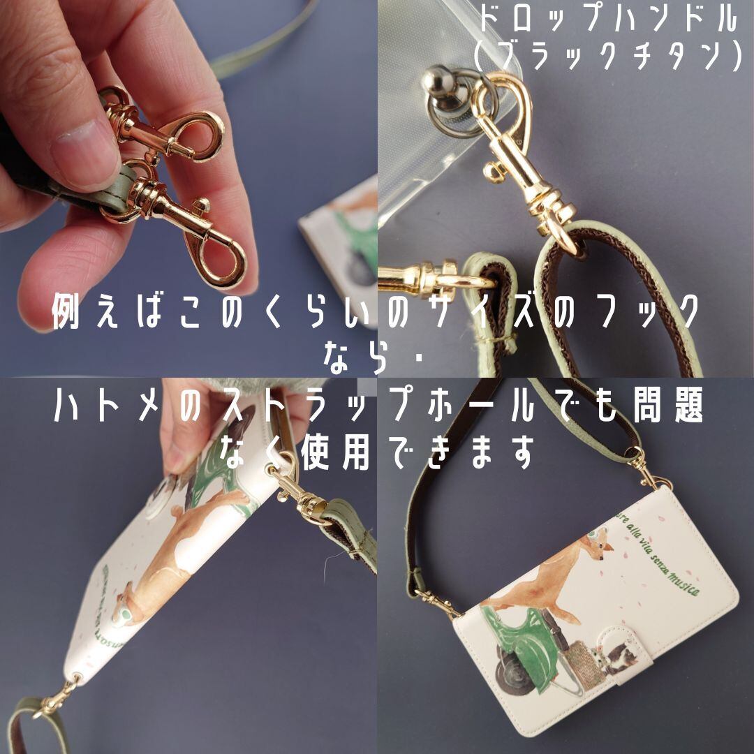 ショルダーストラップのゴールドの金具に合わせてドロップハンドルもゴールドでセットさせていただいていますが、ドロップハンドルは3カラーございます。