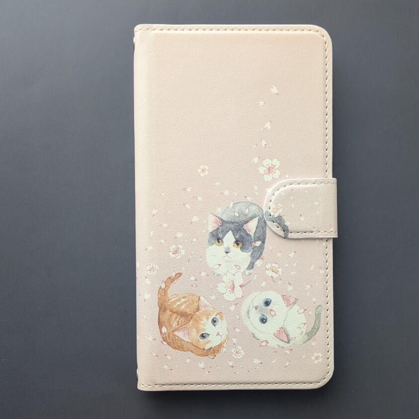 名入れ可・ストラップショルダー対応*ベルト付き背面ケースに変更可*ほぼ全機種対応 手帳型*猫と桜【桜猫】