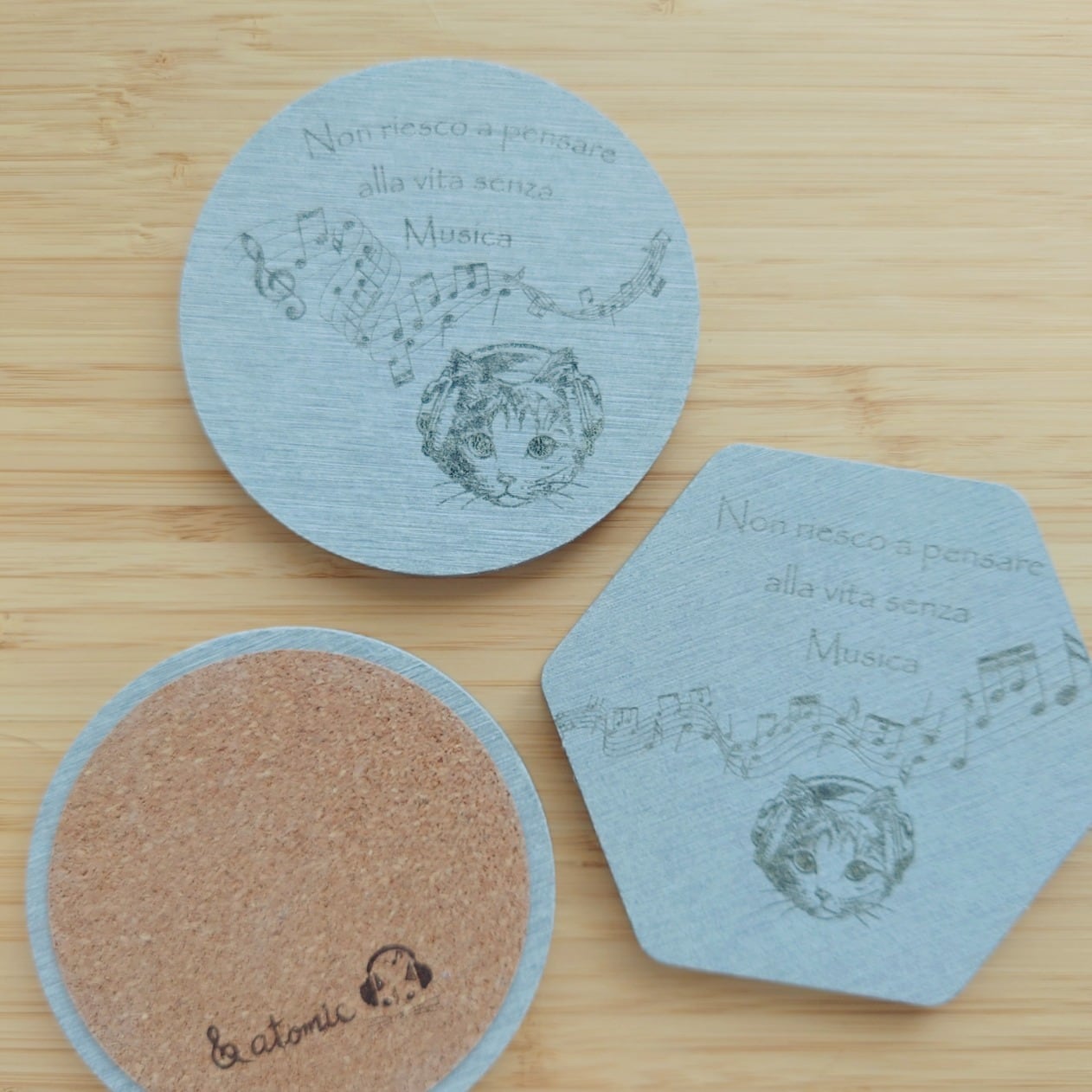 シンプルな珪藻土コースターにレーザー彫刻しました。